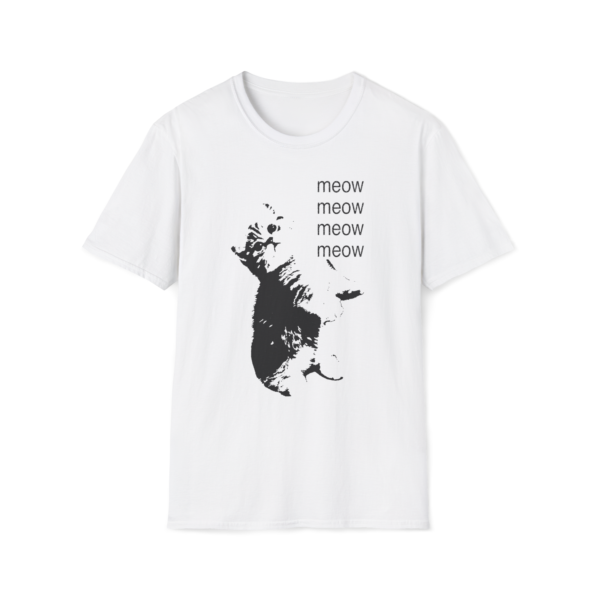 Diseño minimalista que combina la figura de un gato con el texto de su maullido característico.